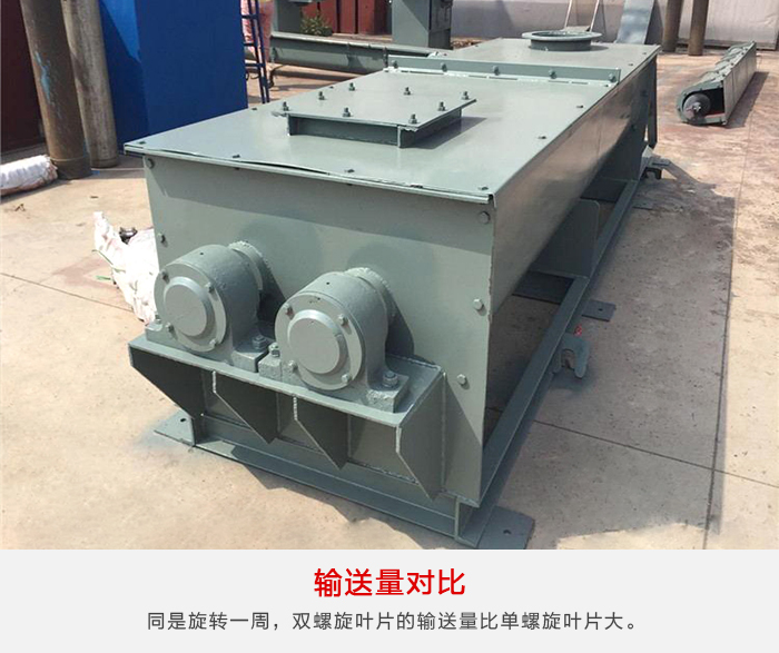 双螺旋和单螺旋在同样转速下,因为双螺旋叶片的螺旋角比单螺旋叶片高,因此双螺旋叶片的输送流量比单螺旋叶片大,同是旋转一周,双螺旋叶片的输送量比单螺旋叶片大。