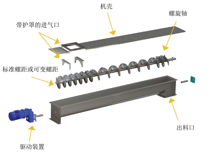 适用物料:较松散的、有粘性的、易缠绕物料,输送物料温度高可达100℃