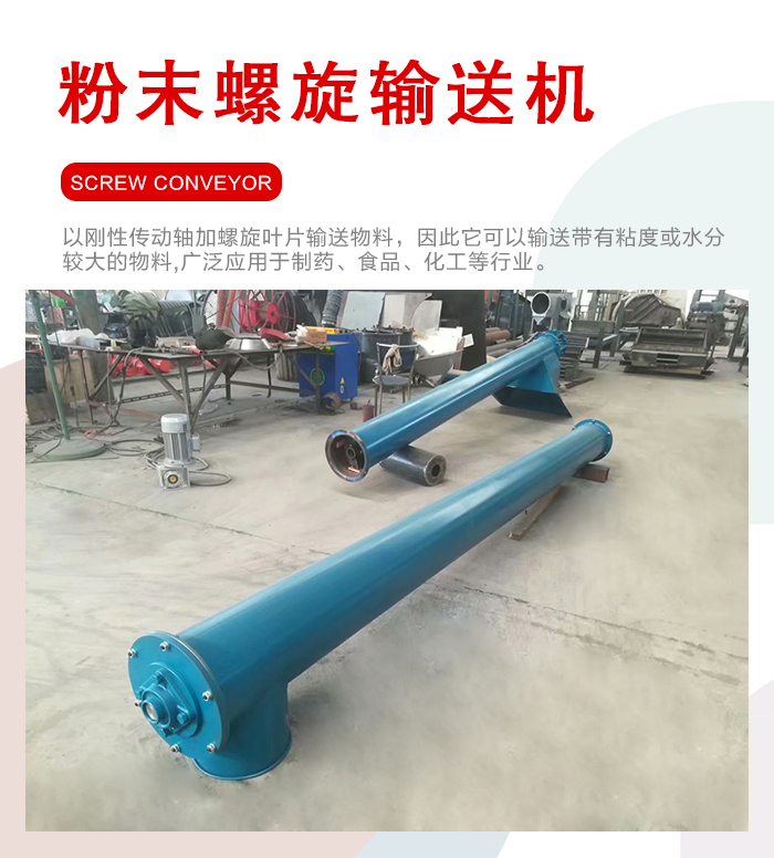 该产品是以刚性传动轴加螺旋叶片输送物料,因此它可以输送带有粘度或水分较大的物料。该机的优点,原料在输送过程中不受污染,可在几分钟迅速拆装,清洗方便。符合要求,广泛应用于制药、食品、化工等行业。
