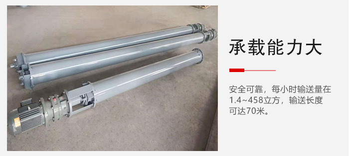 1、承载能力大、安全可靠,每小时输送量在1.4~458立方,输送长度可达70米;