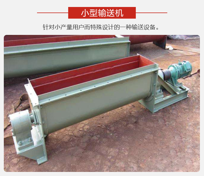 小型输送机适用范围广泛,如建材、化工、电力、冶金、煤炭、粮食等行业,适用于水平或倾斜输送粉状、粒状和小块状物料,如煤、灰、渣、水泥、粮食等。