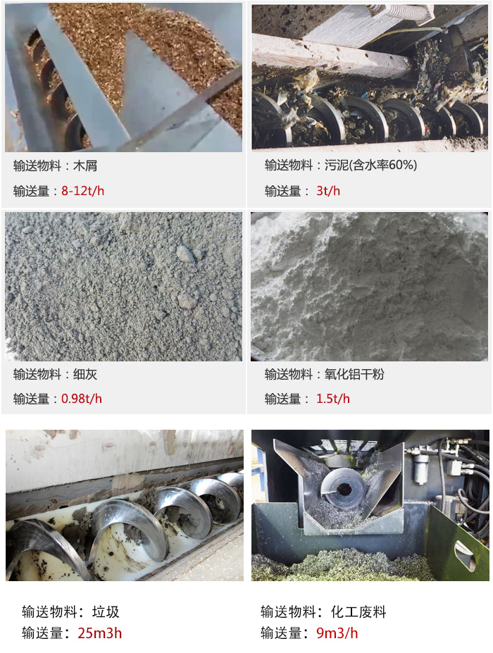 适用物料:污泥、生活垃圾、泥浆、混凝土、水泥等易于粘度高或易于缠绕的物料
