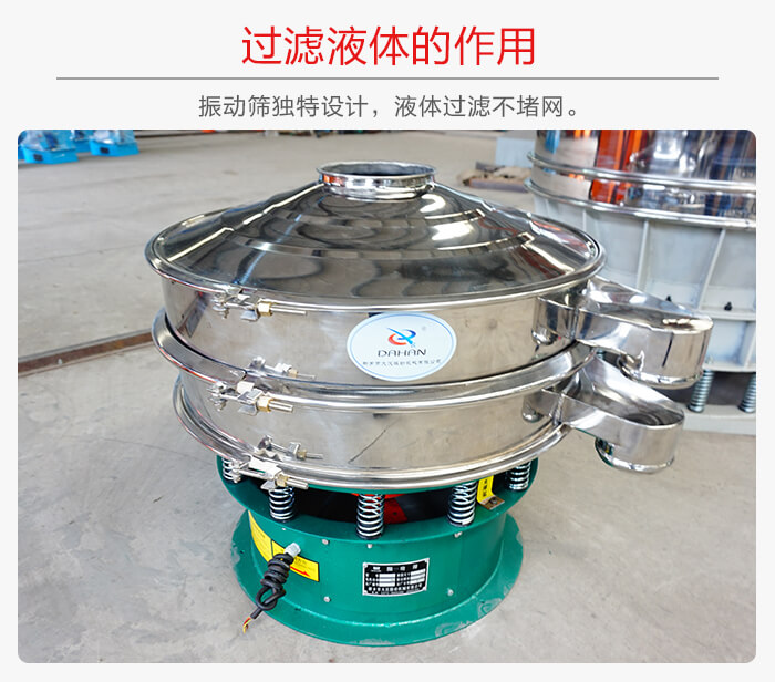 除了石料厂专用的振动筛设备,还有其他种类的振动筛设备,例如可以起到过滤的作用的设备,可以将液体中的物料过滤出来,然后再进行下一步的利用。
