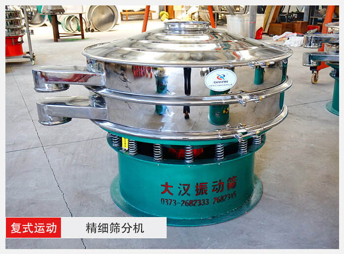 按往复式运动轨迹分:精细筛分机(物料在筛面上向前做往复式运动)。